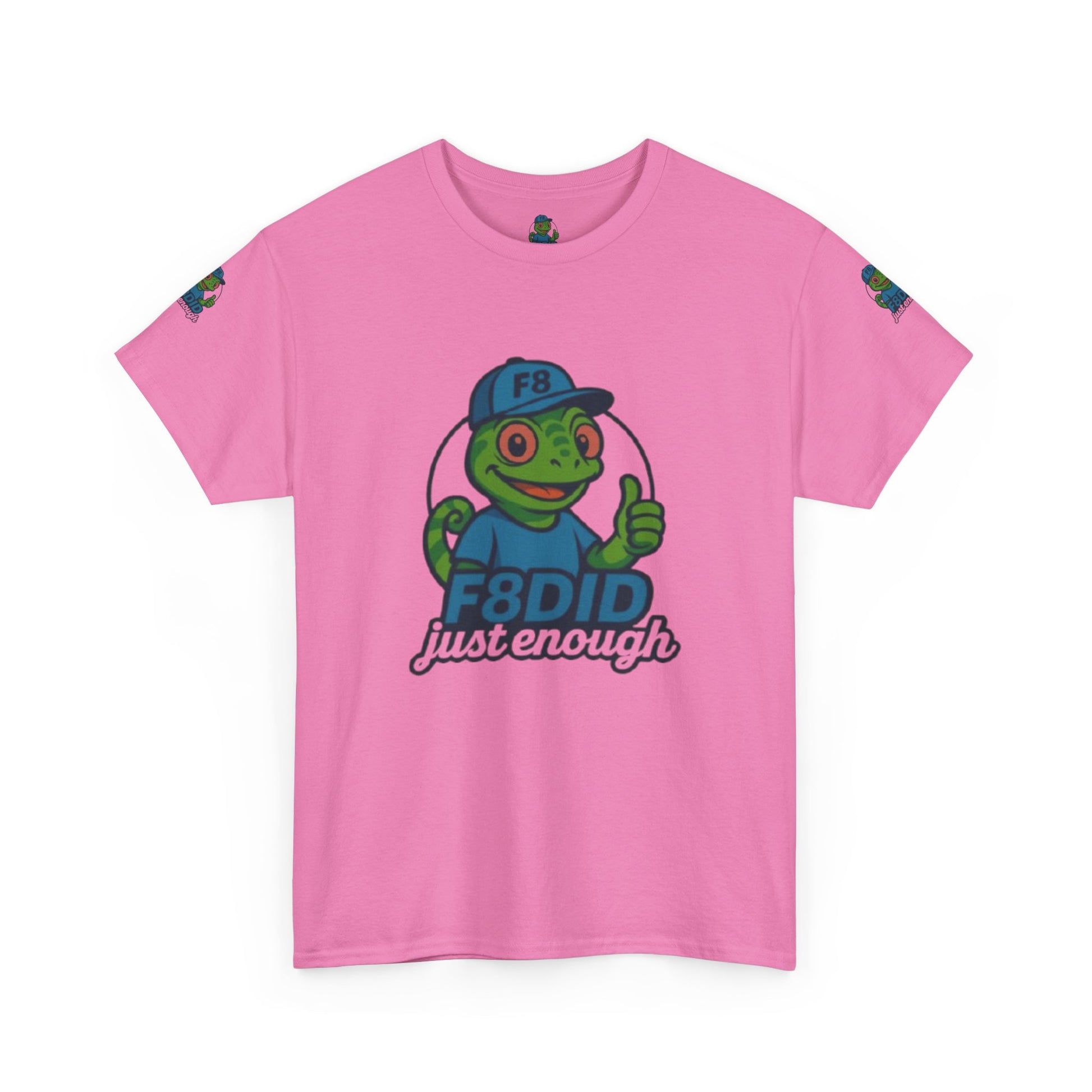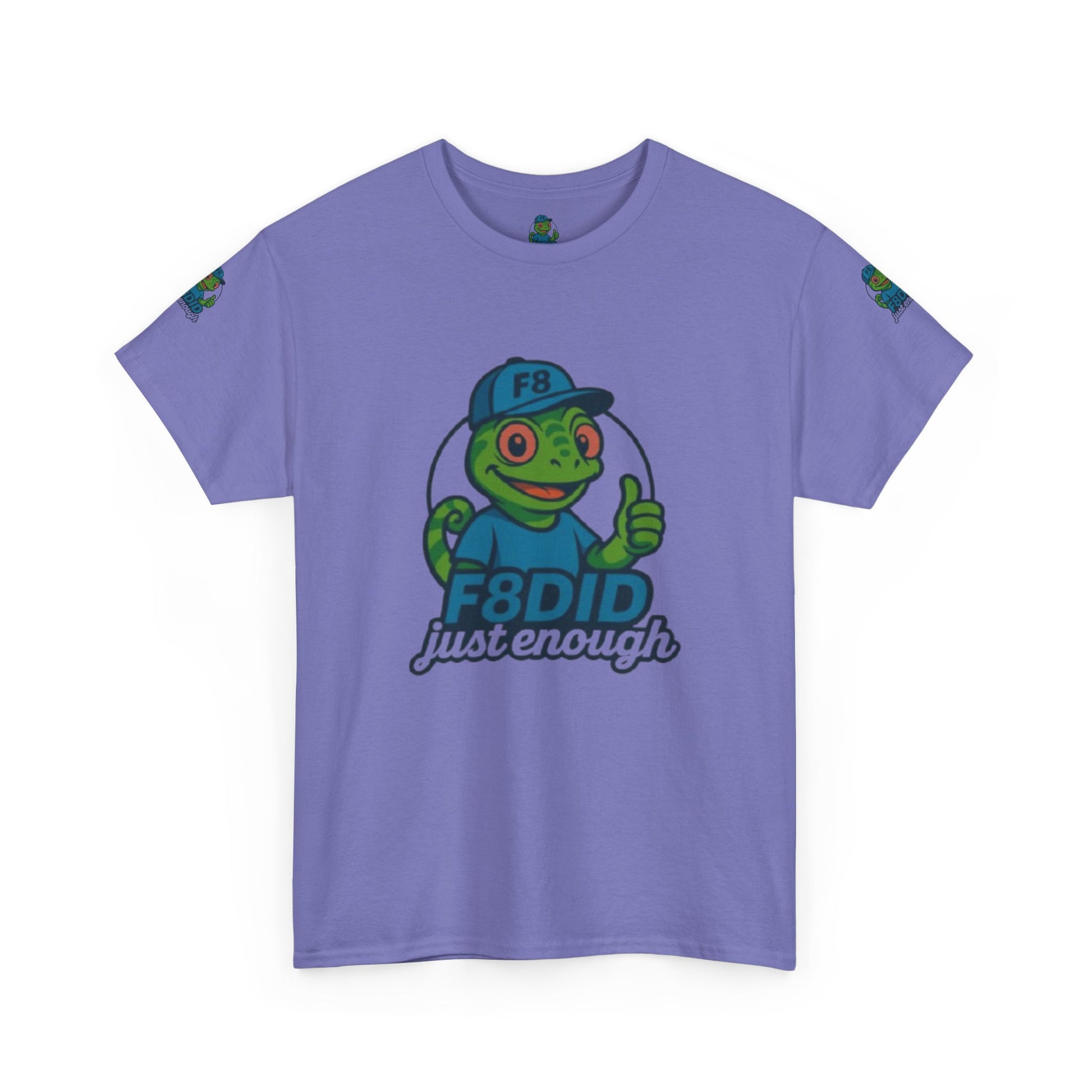 This exclusive shirt features our laid-back chameleon mascot, rocking a fresh F8 cap and giving a cool thumbs up-showing the world you’ve mastered the art of doing just enough. With its vibrant colors and playful design, this tee celebrates adaptability, chill vibes, and knowing when to blend in or stand out. Made for those who move through life with effortless style and a hint of mystery, it’s perfect for anyone who embraces change but always keeps it real. Grab yours before it disappears-because true originals know how to keep it just enough.Product features