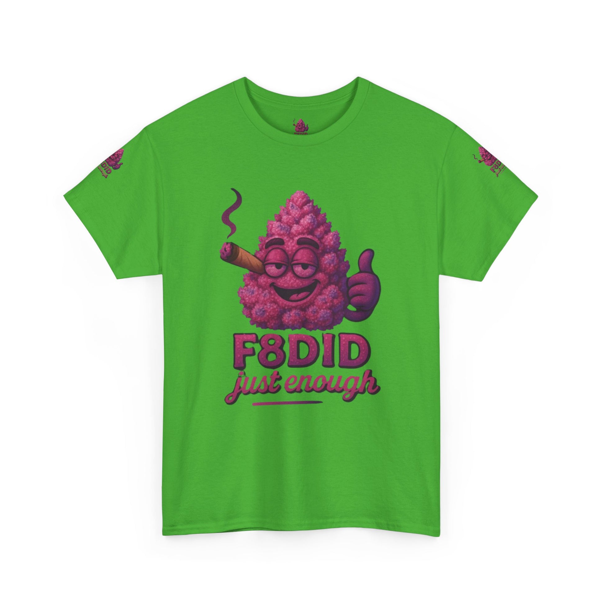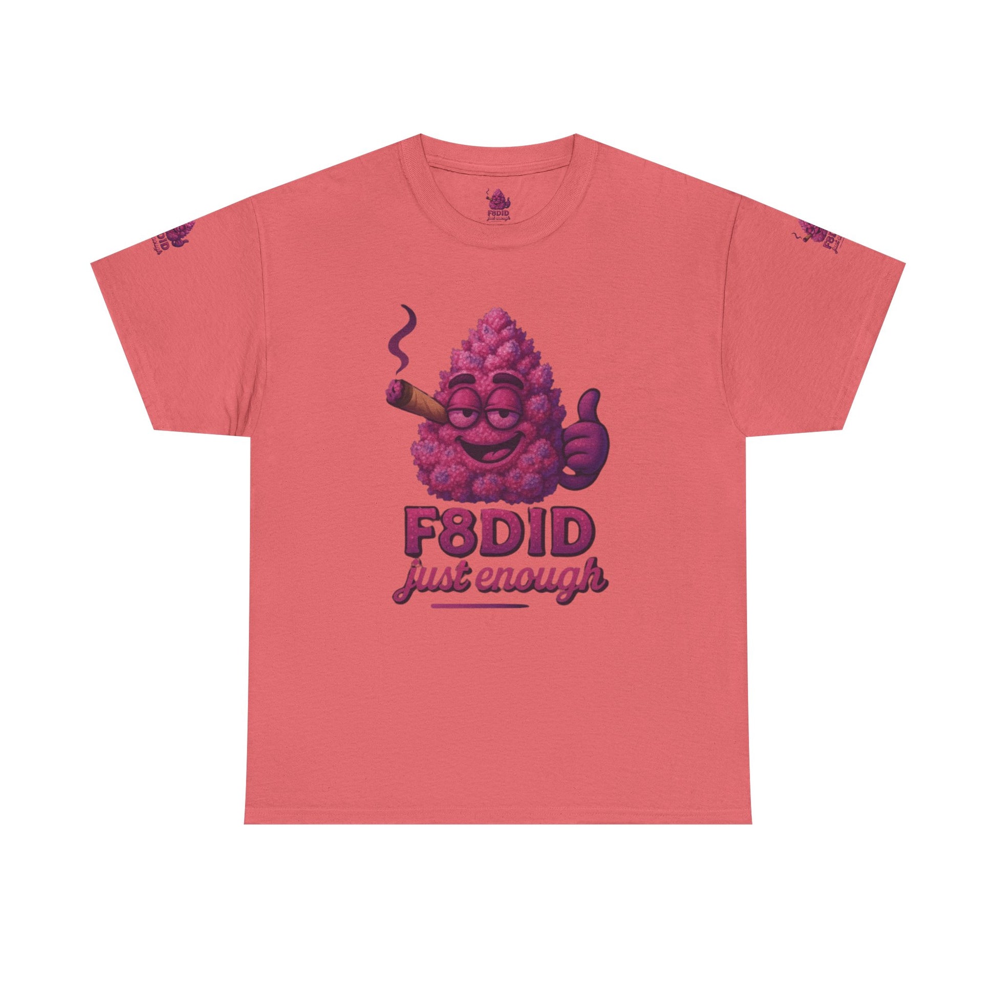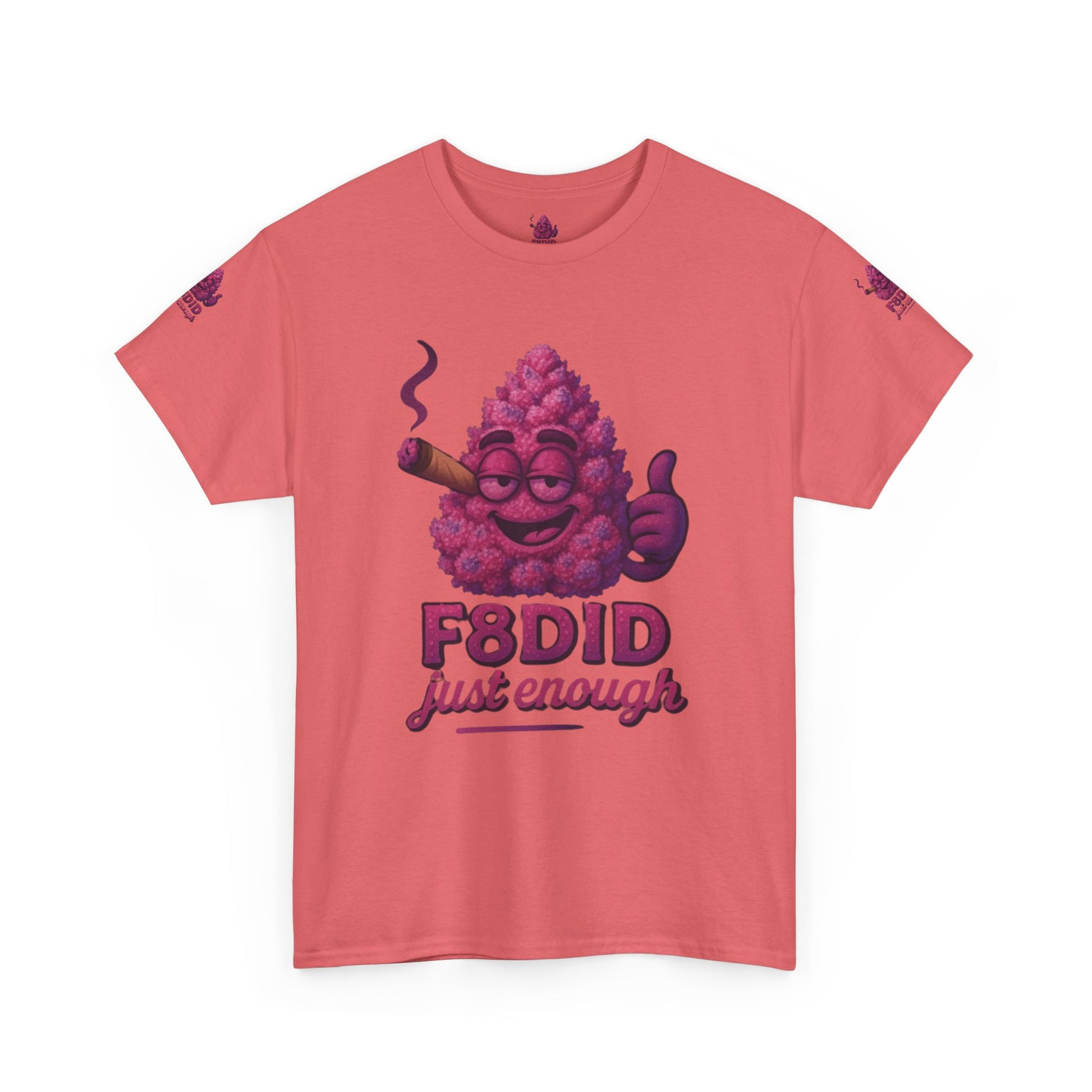 Introducing the Pink Runtz MJ8 Tee from F8DID-a sweet blend of playful style and laid-back vibes. This eye-catching tee features a vibrant, candy-pink bud mascot, grinning with mellow confidence, puffing on a classic cigar, and flashing a thumbs-up. With bold “F8DID just enough” lettering, this design captures the essence of the Pink Runtz strain: sugary-smooth, colorful, and always chill. Perfect for those who know how to keep it sweet and balanced, the Pink Runtz MJ8 Tee is your go-to for standing out with effortless cool and a touch of candy-coated attitude. Wear it, vibe out, and remember-just enough is all you need.