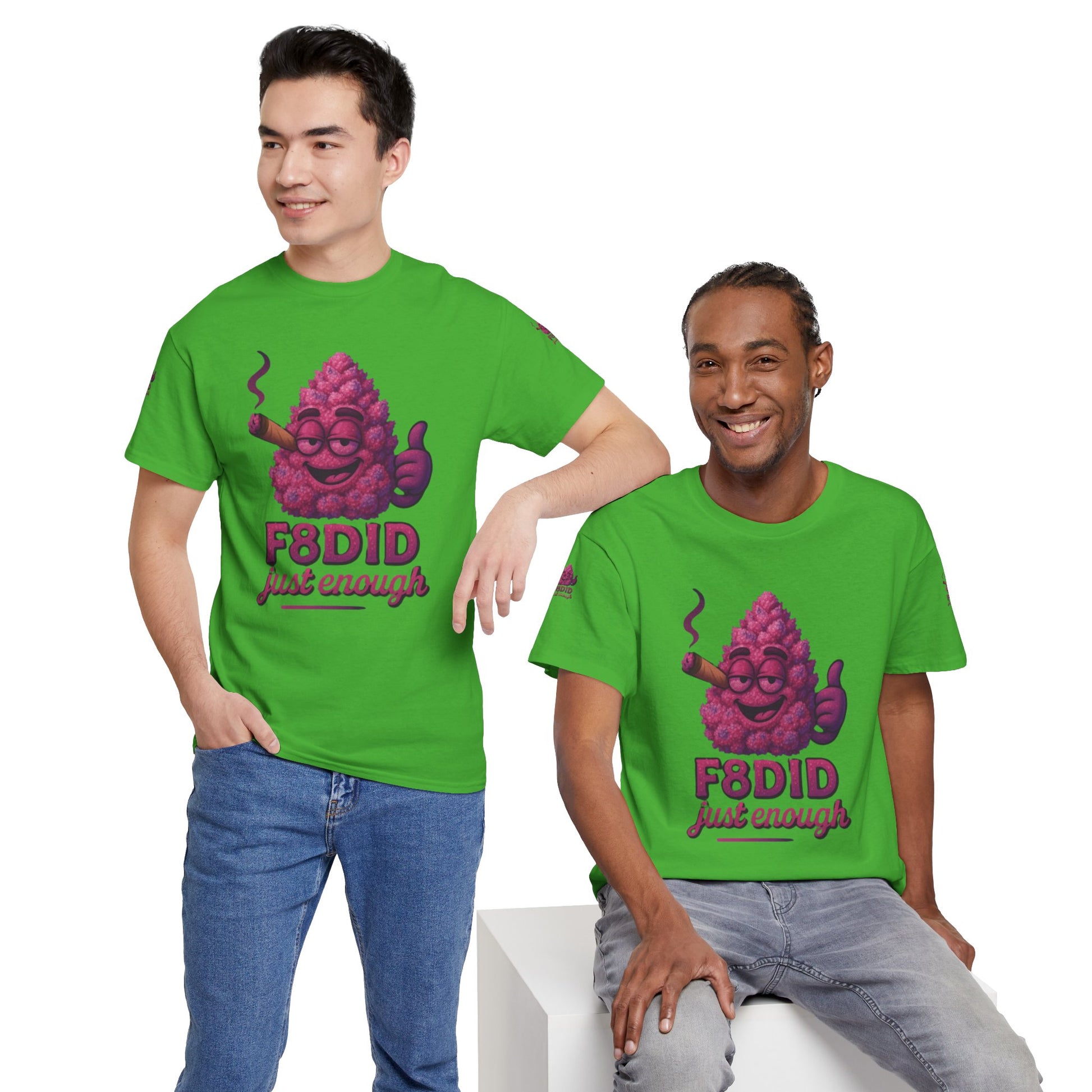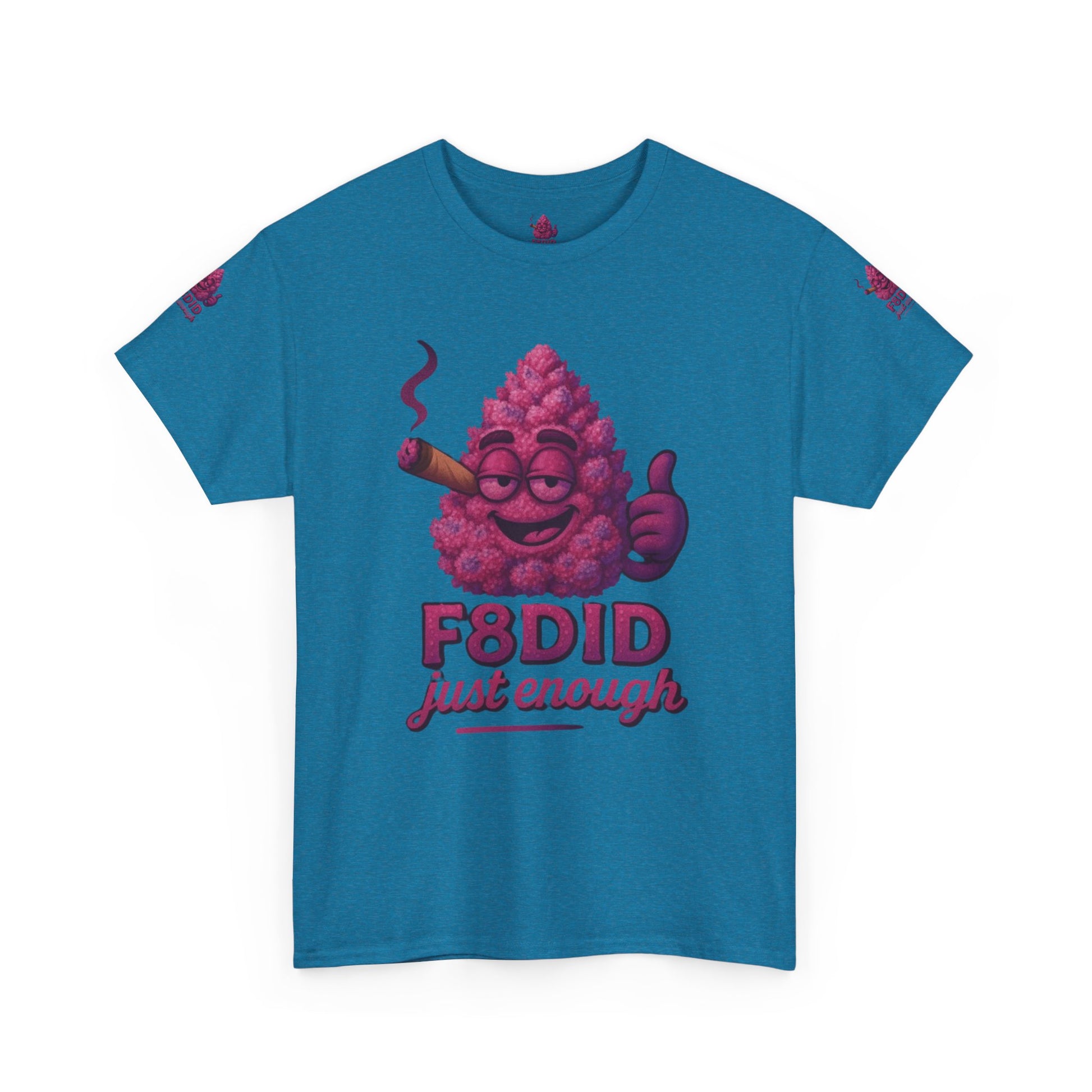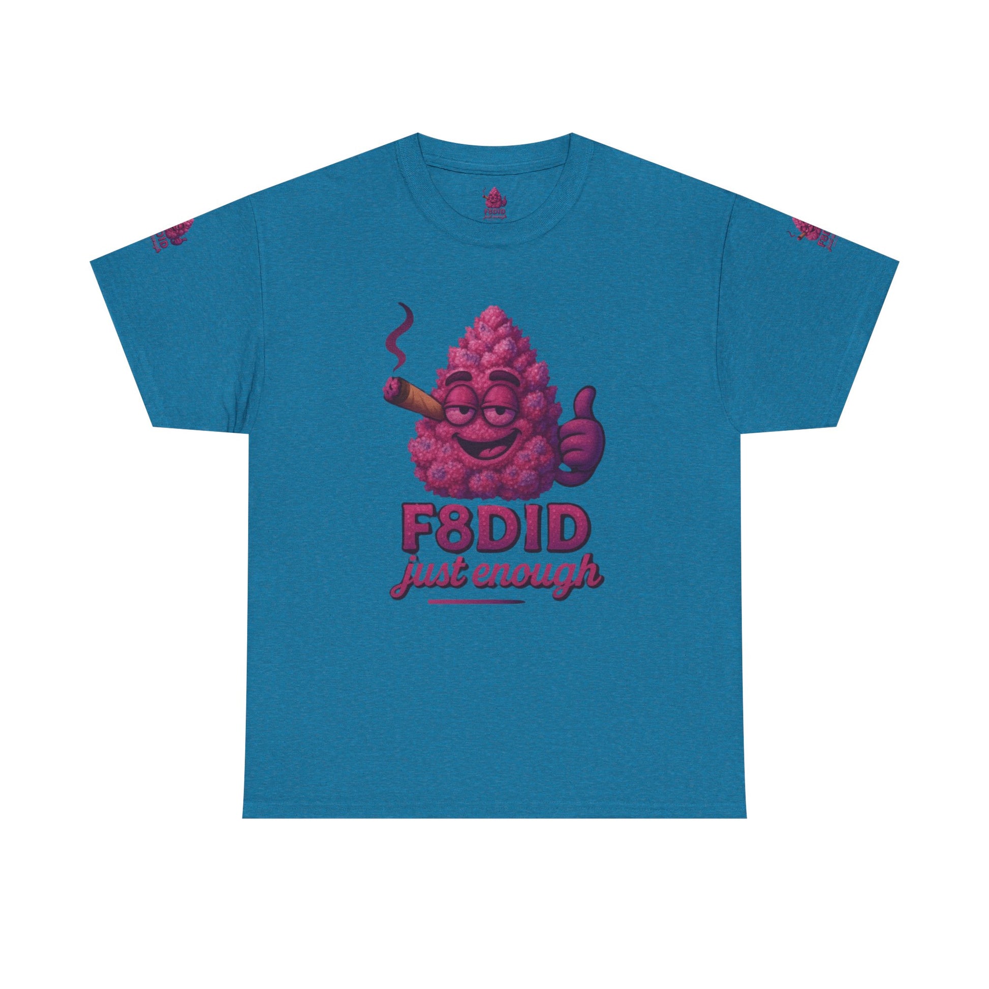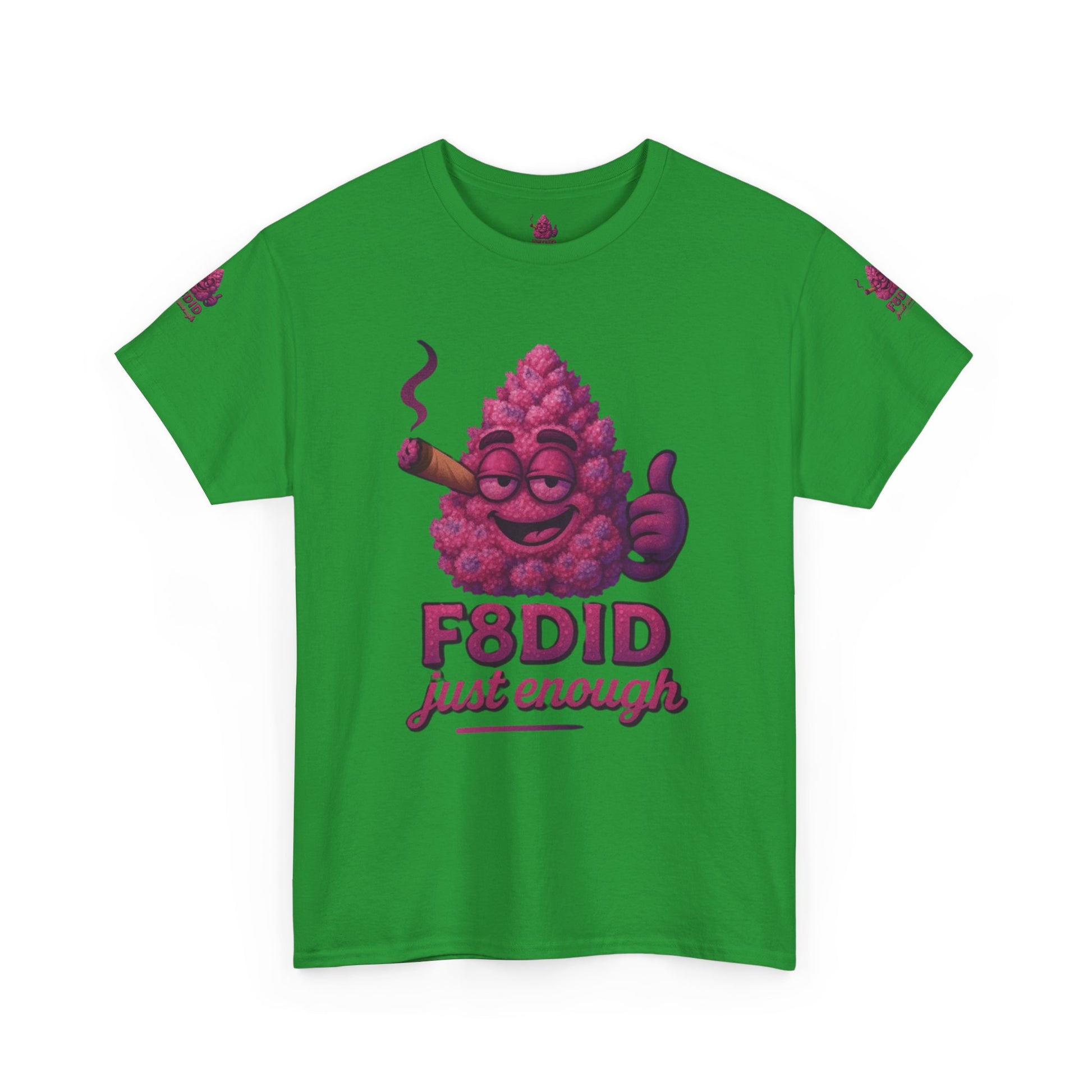Introducing the Pink Runtz MJ8 Tee from F8DID-a sweet blend of playful style and laid-back vibes. This eye-catching tee features a vibrant, candy-pink bud mascot, grinning with mellow confidence, puffing on a classic cigar, and flashing a thumbs-up. With bold “F8DID just enough” lettering, this design captures the essence of the Pink Runtz strain: sugary-smooth, colorful, and always chill. Perfect for those who know how to keep it sweet and balanced, the Pink Runtz MJ8 Tee is your go-to for standing out with effortless cool and a touch of candy-coated attitude. Wear it, vibe out, and remember-just enough is all you need.